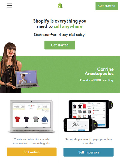 第一眼看到 Shopify 这个网站的时候,充满了小清新的感觉,采用绿色调的色彩搭配,使网站充满了活力。其网站制作采用了国外已经流行的 Html5 技术,并且实现了响应式布局,无论我们在PC电脑、笔记本电脑、Pad,还是手机上看,都可以获得完美的视觉体验。